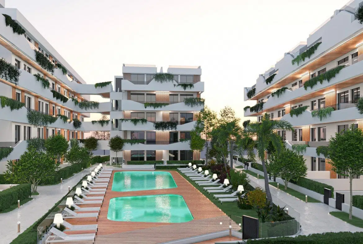 New Build Tourist Apartments in Santiago de la Ribera, San Javier – Just 750 m from the Beach Exclusive Development on the Costa Cálida This exclusive residential complex of 125 tourist apartments is located in Santiago de la Ribera (San Javier) , a charming seaside town on the Costa Cálida, renowned for its beautiful sandy beaches, relaxed Mediterranean lifestyle, and excellent year – round climate. With the Mar Menor just 750 meters away, these homes offer the perfect combination of comfort, style, and proximity to the sea. Modern Apartments with Multiple Options The development offers spacious 3 – bedroom, 2 – bathroom apartments, including an ensuite master bedroom. Buyers can choose from: Ground floor units with private garden Mi ddle floor apartments with large terraces Penthouses with private solarium Each home is designed to maximize natural light and outdoor living. Features include fully fitted and furnished kitchens with appliances, interior and exterior lighting, bathrooms with furniture and shower screens. Every property comes with a surface parking space, while underground parking and storage rooms are available at an additional cost. Premium Amenities and Services Owners will enjoy a modern building equipped with elevators, two communal swimming pools, and beautifully landscaped gardens. The homes include pre – installation of ducted air conditioning for year – round comfort. A Smart Investment Opportunity These apartments come with a tourist license already granted, making them an excellent investment for holiday rentals. Owners can generate income through short – term rentals while also enjoying the property for their own family holidays. Please note that these residences are intended for vacation use and cannot be used as permanent homes. Prime Location in San Javier The development is strategically located close to all essential services and leisure activities. Distances to main points of interest: Mar Menor beach: 750 m La Ribera Shopping Center: 2 km Dos Mares Shopping Center: 3 km Roda Golf: 5 km Lo Pagán Marina: 4 km Murcia Airport (Corvera) : 40 km Cartagena: 30 km Murcia City: 40 km Make Your Coastal Dream Come True This new build project in Santiago de la Ribera represents a unique opportunity to enjoy the Mediterranean lifestyle while making a smart rental investment. Contact us today for more details or to schedule a viewing of these modern tourist apartments just steps from the Mar Menor.